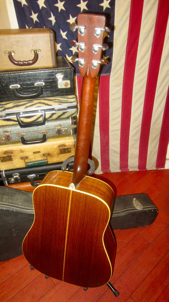 A highly sought-after vintage dreadnought featuring a solid Sitka spruce top, solid East Indian rosewood back and sides, and a Mahogany neck with an ebony fingerboard.