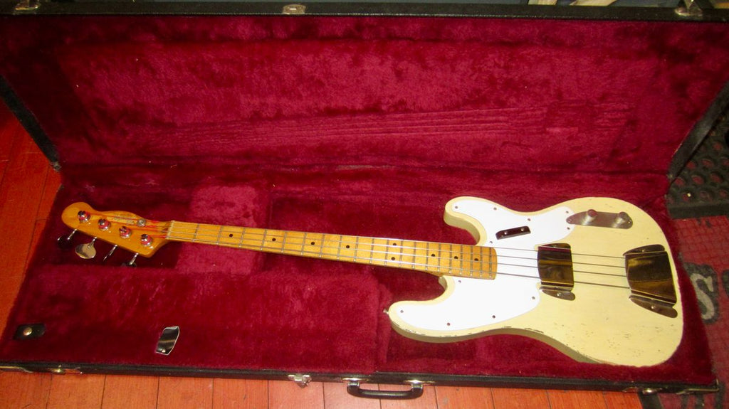The neck is straight and true with a good action. It has lots of wear, and the logo does. not appear to be original.