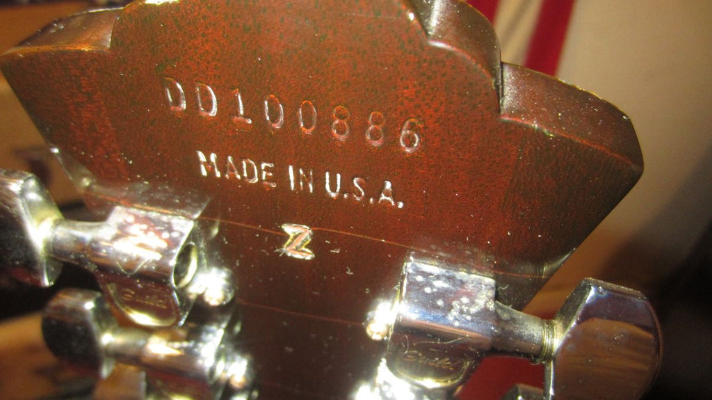 It features a vintage gloss nitrocellulose finish, a C-shaped mahogany neck, and is crafted in the USA with traditional appointments like a bone nut and saddle.