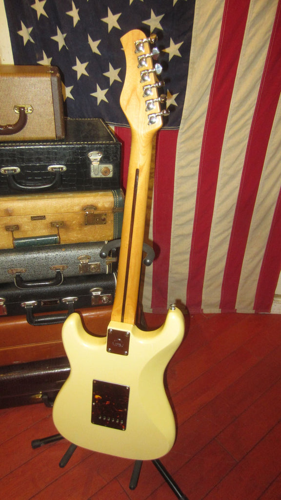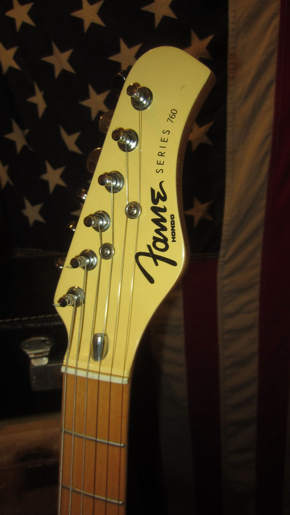 Circa 1983 Hondo Fame Stratocaster, cool aged white finish.