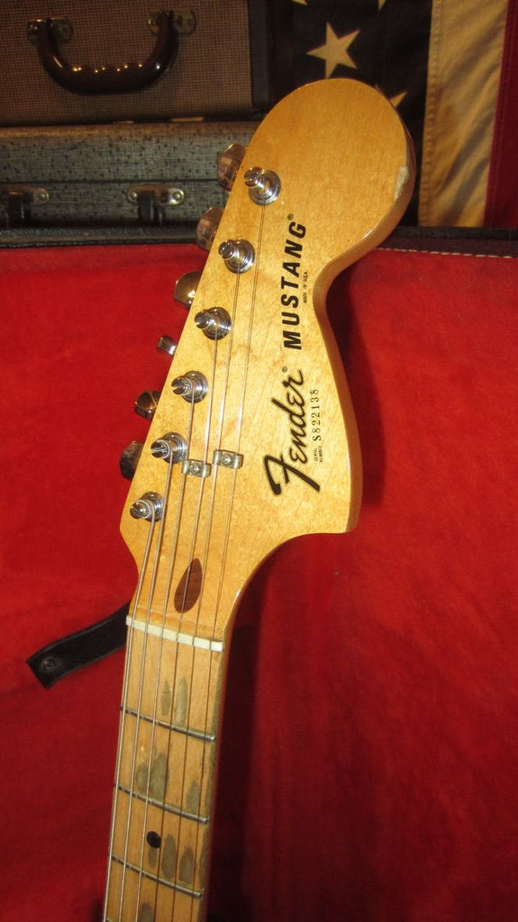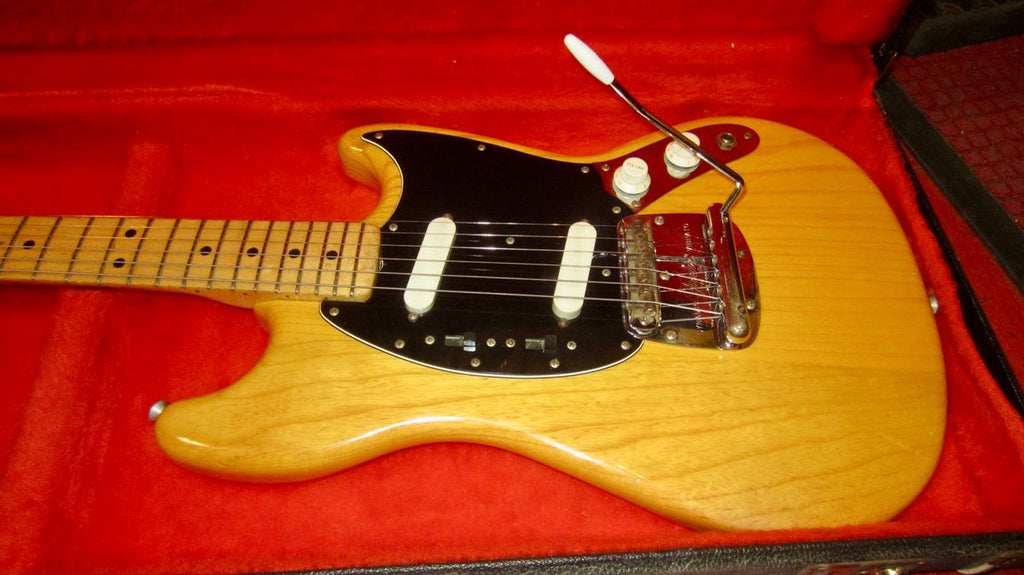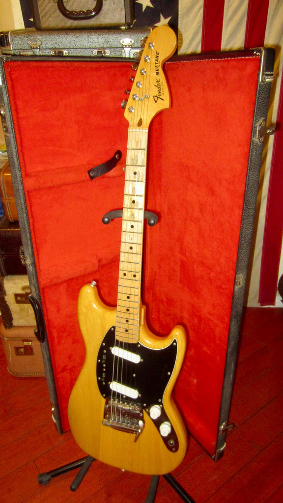 Here's a vintage pre-owned 1978 Fender Mustang in original Natural finish with a Maple neck.