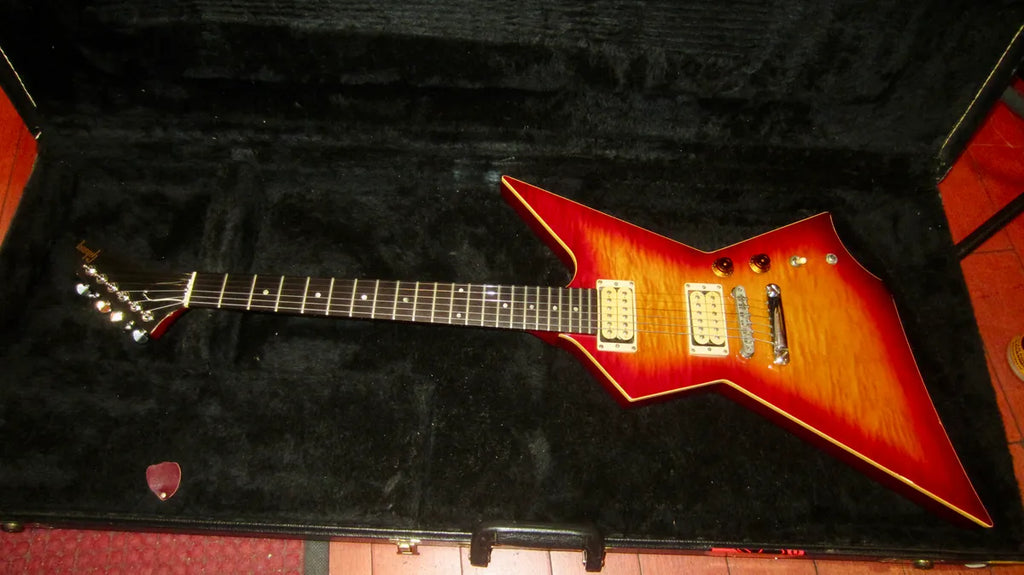 This is a dream guitar. The killer, innovative 1980s shape is like an Explorer with a cool cutout by the leg so you can actually rest it on your leg while you are playing.....smart.