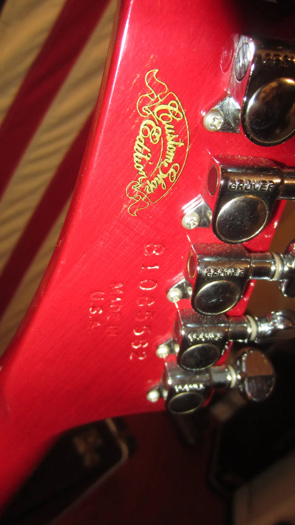 Here is a rare bird! An original 1985 Gibson Custom Shop Edition XPL Explorer with original tune o matic bridge and flames Sunburst finish. Also features two original Tim Shaw double white humbuckers!