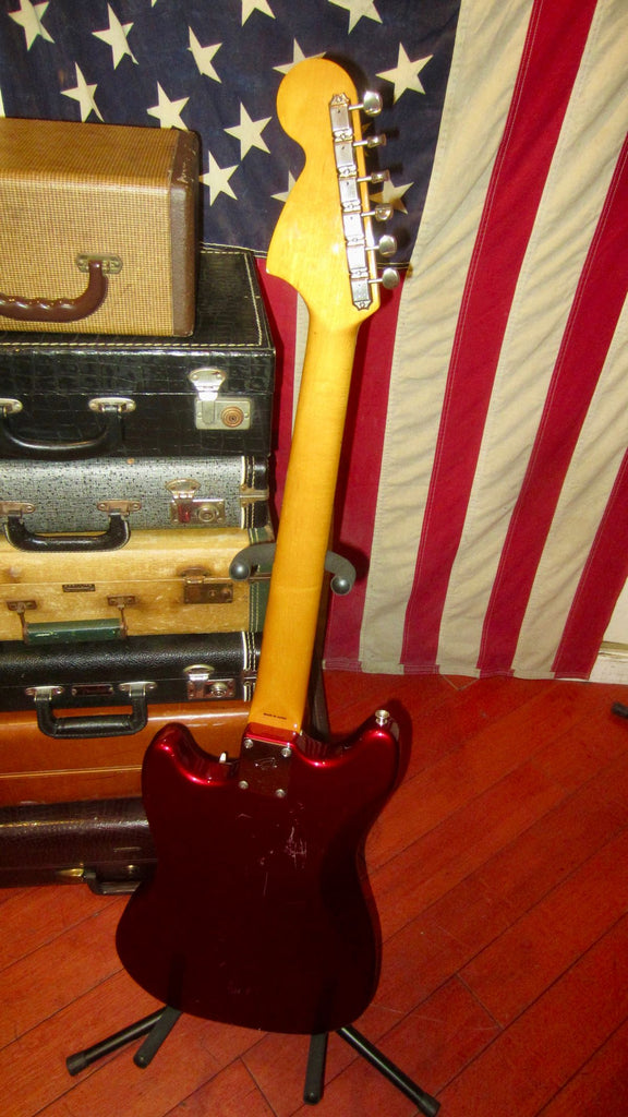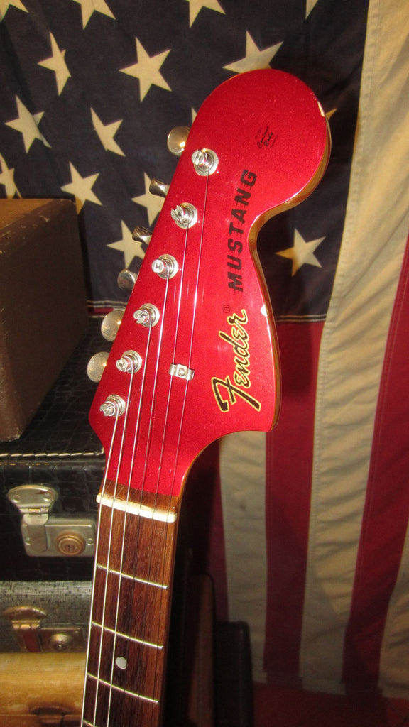Here's an original 1995 Fender 1969 re-issue Mustang MG-69 in original Candy Apple Red with matching headstock.