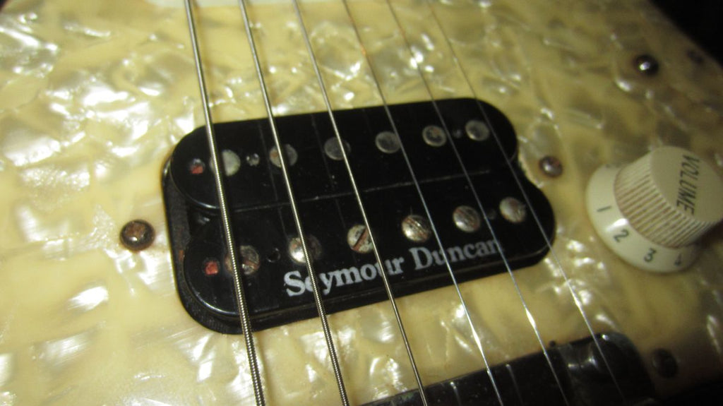 Here's a 1996 Fender American Standard Stratocaster that the bridge pickup has been replaced with a Seymour Duncan humbucker that is just screaming.