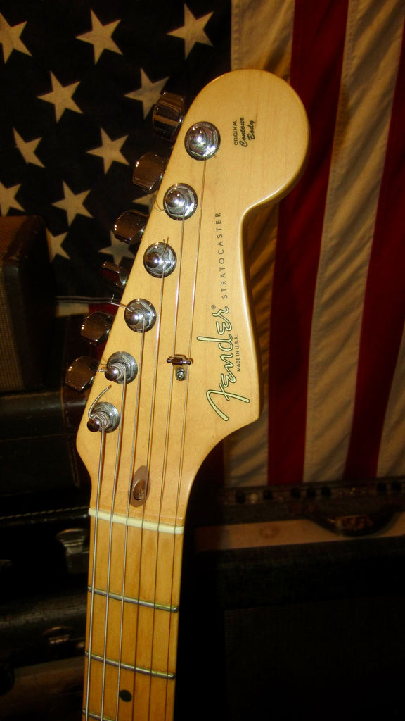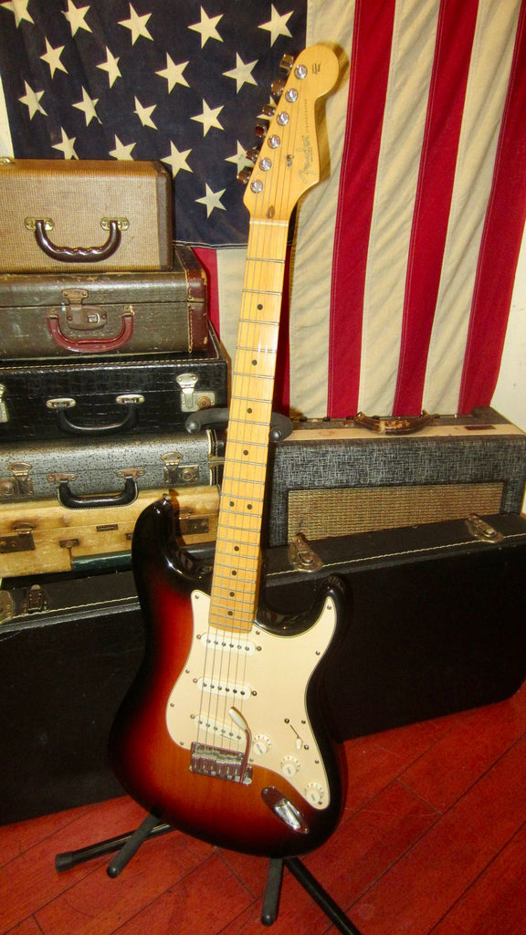 Here's an original pre-owned 2003 Fender American Standard Stratocaster in original Sunburst finish.