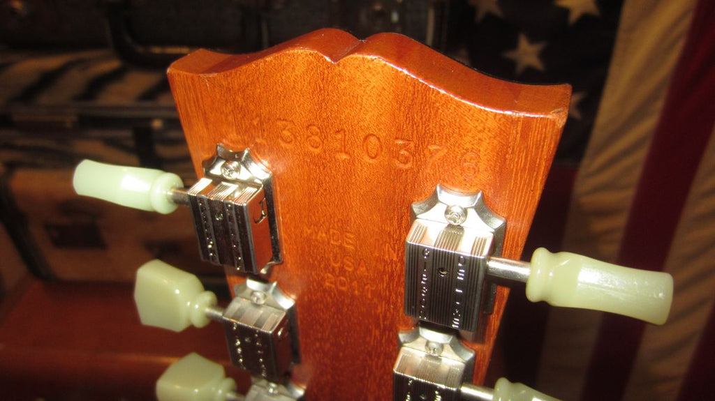 Here's a killer original pre-owned 2011 Gibson Les Paul Tribute in original Sunburst finish with two original cream p-90 pickups.