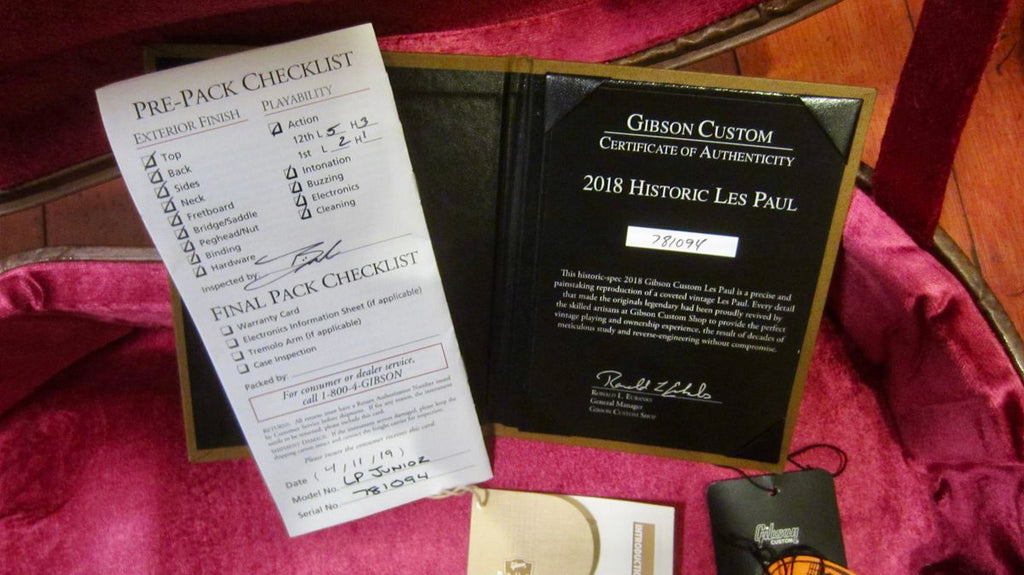 Here's an original pre-owned 2018 Gibson Custom Shop '57 Re-Issue Historic Les Paul Jr. in original TV White finish.