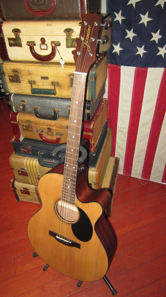 This Jasmine J-34 C is a real nice auditorium sized acoustic with a solid top and a fantastic tone.