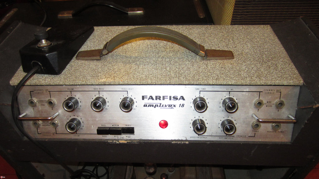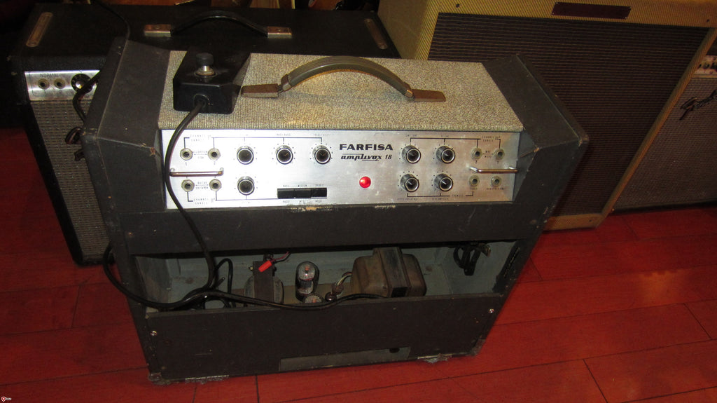 Super rare vintage original Farfisa Amplivox 18 amp. Sounds incredible. Super warm vintage tone. Has a tremolo circuit and lots of EQ. Nice and clean and original with original footswitch, too.