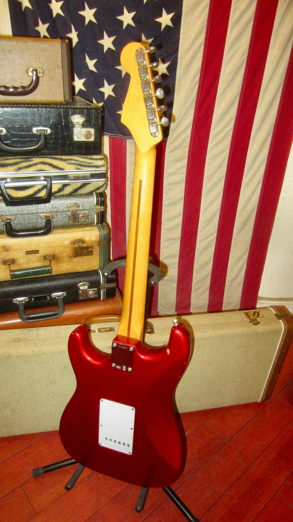 Original Candy Apple Red finish is stunning. Original Fender re-issue pickups are warm and full of classic vintage Fender Start bell tone.