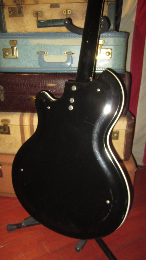 A real cool res-o-glass body with two original Supro pickups that are screaming with tone.