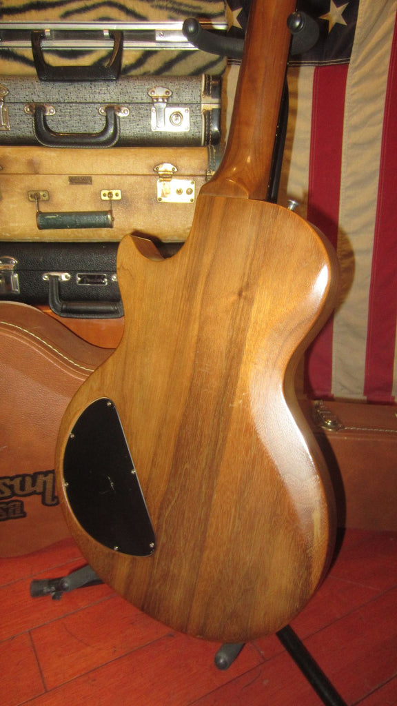 It features a distinctive all-Walnut body and neck, and a 22-fret Ebony fingerboard with dot inlays. The neck is straight and it plays with a real nice low action and no buzz or issues.