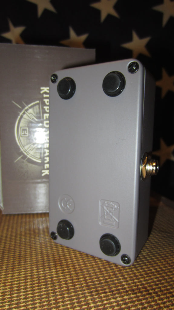 The Ripped Speaker is a modern fuzz with old school roots and pays homage to one of the ways that early, distorted guitar and bass sounds were made. At low fuzz settings the pedal emulates the lo-fi distortion sounds of yesteryear, the kinds of sounds created by a razor blade applied to a speaker cone, a loose tube or a faulty channel on a recording console. When you crank the fuzz up the sound is transformed. It’s modern and monumental with a searing, fully saturated, fuzz tone.