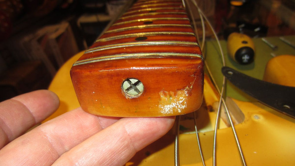 Bass is completely original though the finish has been over sprayed both on the body and the neck, giving it a nice patina.