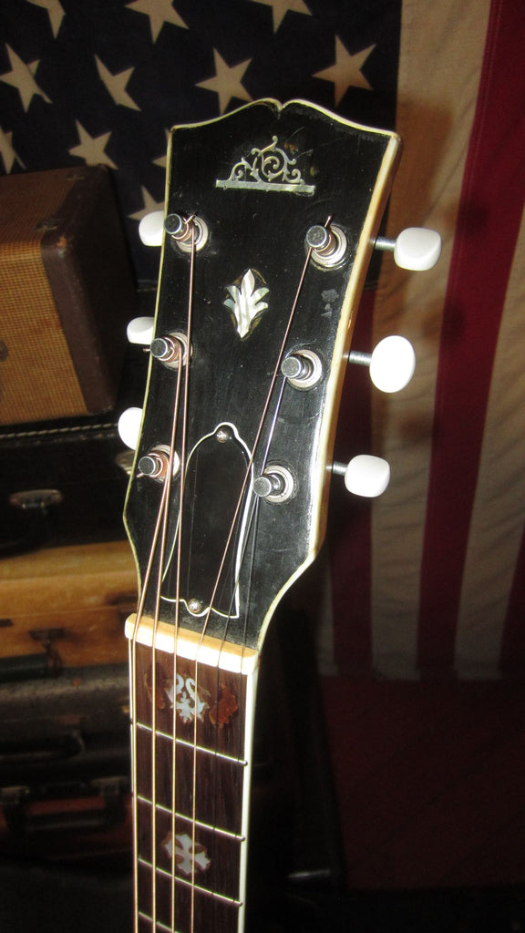 It's had custom inlays put in the neck and the headstock. Orignal maple back and sides, a very desirable and rare feature. The original deep, dark Sunburst finish remains on the top.