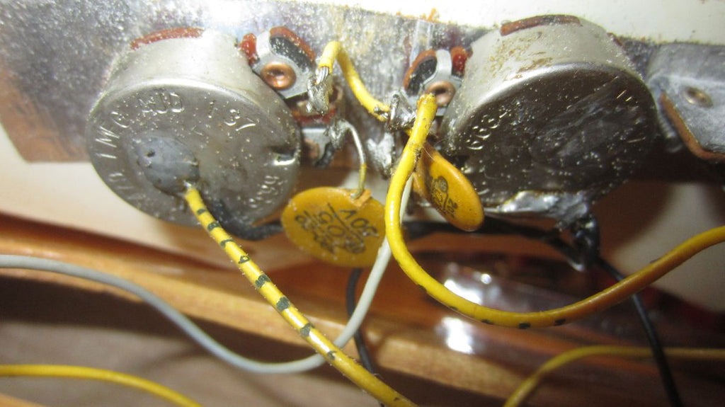 Original single coil pickups are super warm and punchy with a signature Tele twang in the bridge, and a fat, warm tone on the neck pickup. All wiring and pots are original, both pots are dated 1966.