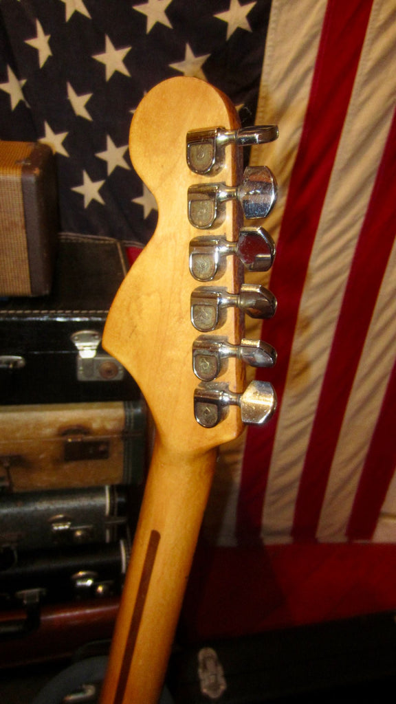 The neck and the body are orignial 1976. The pickups and wiring is modern Fender USA Cunife humbuckers. Cunife is a vintage-style guitar pickup that uses unique CuNiFe (copper-nickel-iron) magnets in a Wide Range humbucker design, delivering a rich, bell-like tone with clear articulation and strong bass.