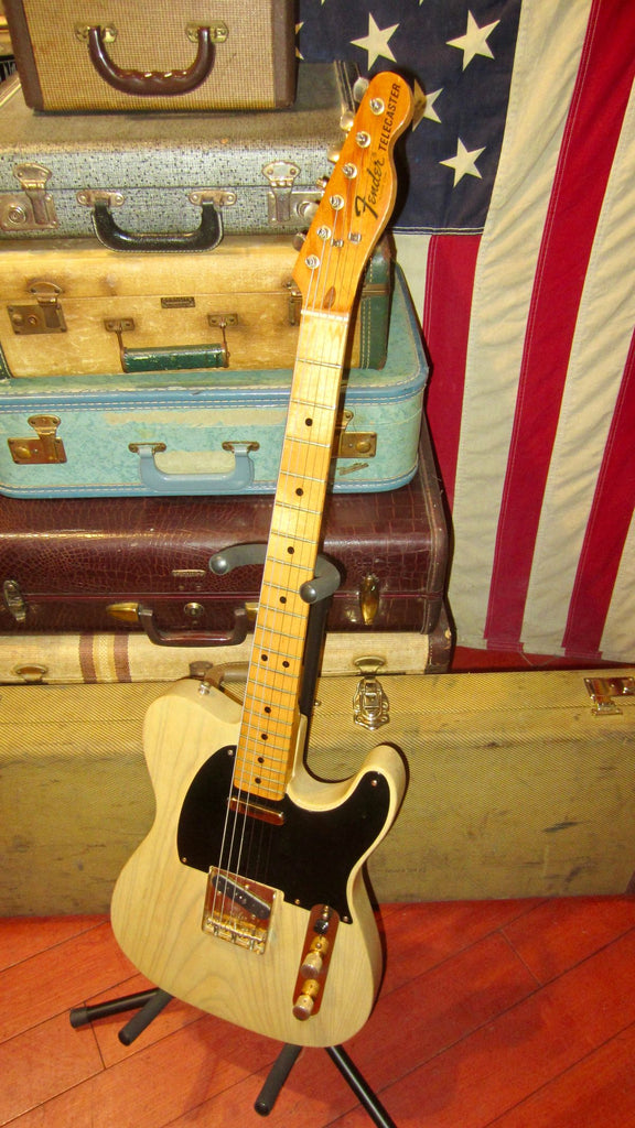 Vintage 1974 Fender Telecaster. Has a real 1950s vibe with a black pickguard and a Blonde refinish that looks 1950s and very unique original gold hardware.