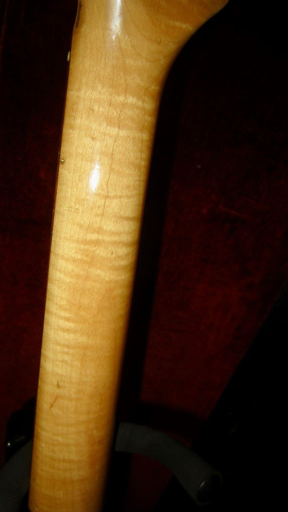 This example has a particularly fine curly maple neck that is flamed out real nicely.